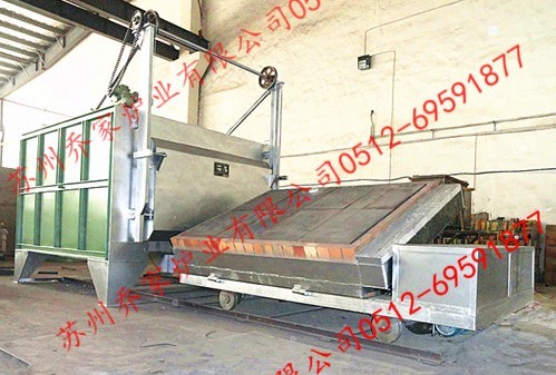 4、臺車傾斜、臺車進出、爐門升降均為電動控制,且設有連鎖保護裝置,可防止因誤操作而產生的故障和事故;